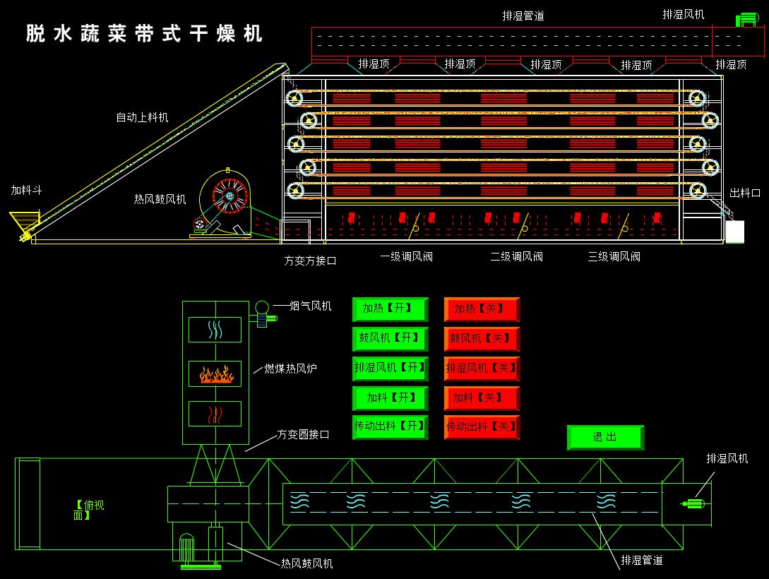 蔬菜脫水干燥機分別有加料器、干燥床、熱交換器及排濕風(fēng)機等主要部件組成。